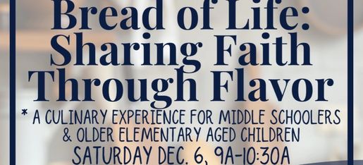 Check out our recently added event! “Bread of Life: Sharing Faith Through Flavor” is geared towards middle schoolers and older elementary aged children, click the event to see full description. This is a free event and seats are limited, so reserve your child’s spot today!